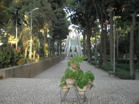 بالاخره به سر قبر خیام میرسیم . باغی بزرگ در جوار امامزاده ! گویی قبر خیام هم شیش گوشه مینماید . شهر نیشابور به دلم چسبی نزد ولی وقتی خیام را ملموس شدم ٬ نیشابور را مهد ادب و تمدن احساس کردم .