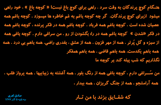 " کوچه باغ " ٬ خود راهی میشود ٬ ازبرای کوچ پرندگان.