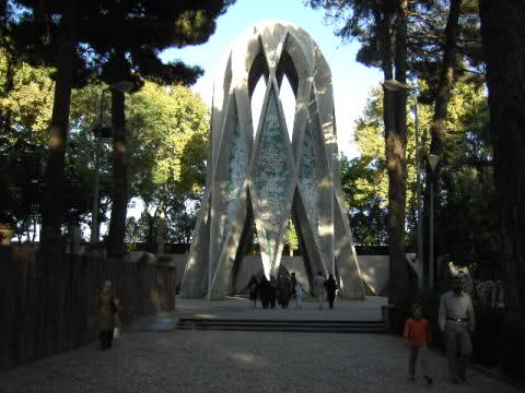 بالاخره به سر قبر خیام میرسیم . باغی بزرگ در جوار امامزاده ! گویی قبر خیام هم شیش گوشه مینماید . شهر نیشابور به دلم چسبی نزد ولی وقتی خیام را ملموس شدم ٬ نیشابور را مهد ادب و تمدن احساس کردم .